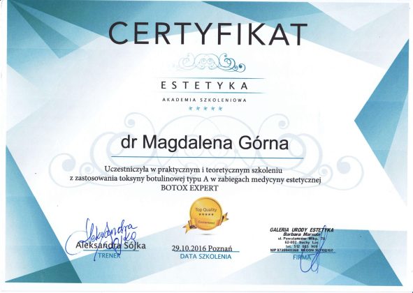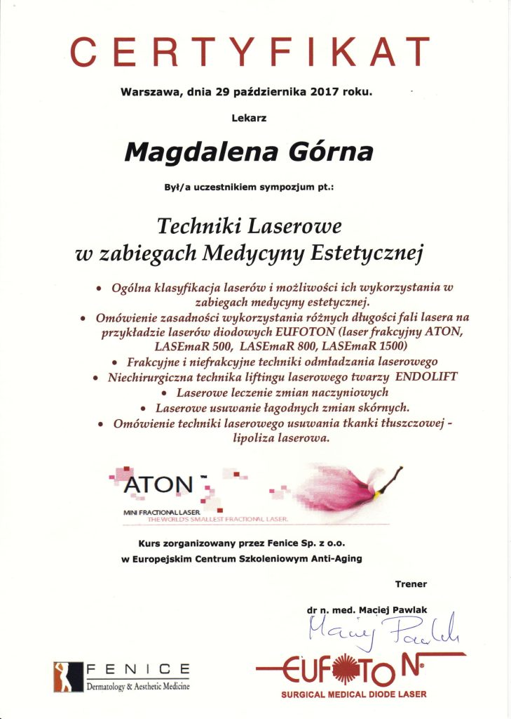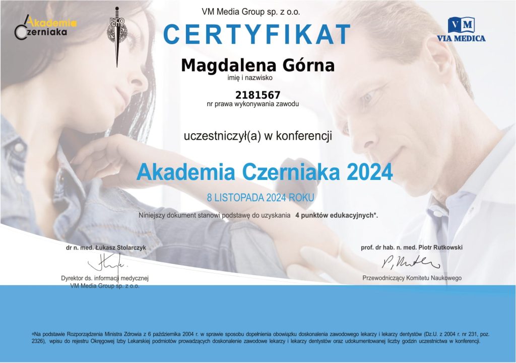 Doktor Magdalena Górna to doświadczony chirurg oraz lekarz medycyny estetycznej specjalizujący się w zabiegach dermatochirurgicznych (usuwaniu zmian skórnych) i procedurach anti-aging.